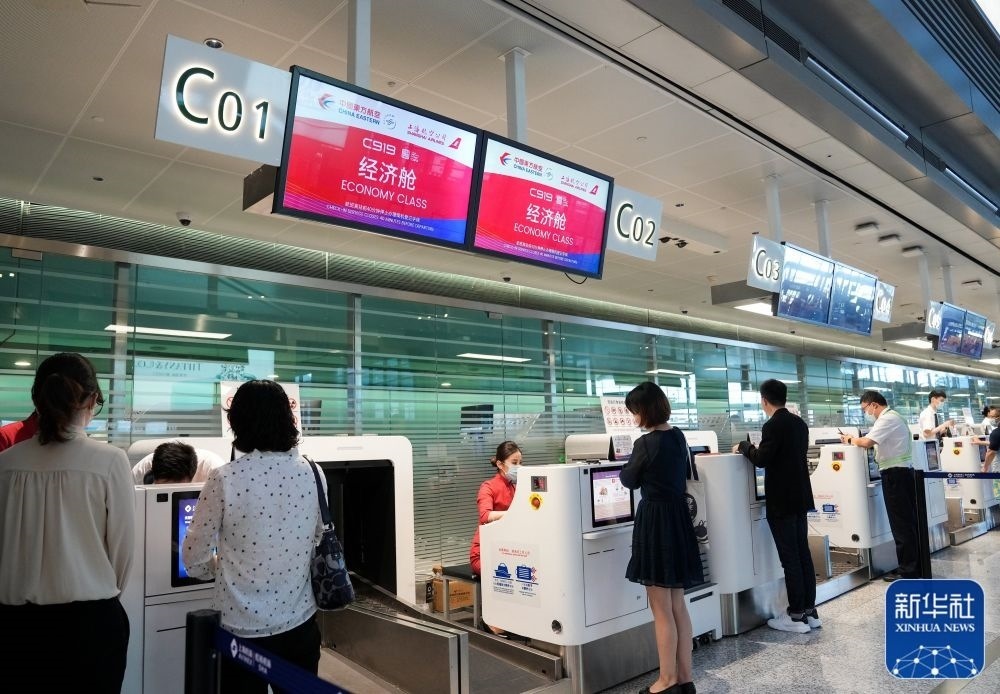 5月28日,旅客在航站樓辦理登機(jī)手續(xù)。新華社記者丁汀攝
