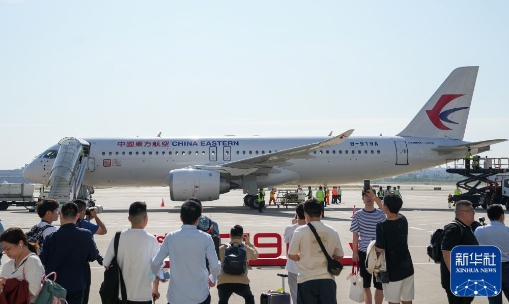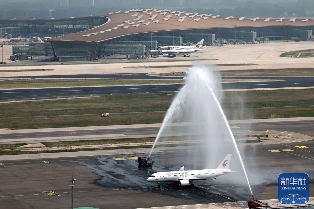 5月28日,C919首個(gè)商業(yè)航班東航MU9191飛抵北京首都國際機(jī)場(chǎng)。新華社記者鞠煥宗攝