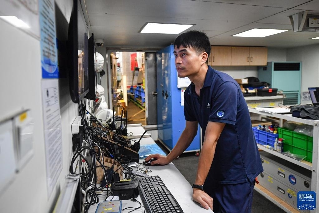 近日,由國家文物局考古研究中心、中國科學(xué)院深??茖W(xué)與工程研究所、中國(海南)南海博物館聯(lián)合組成的深??脊抨牬畛恕疤剿饕惶枴笨瓶即?,在南海西北陸坡一號、二號沉船遺址海域進行第一階段調(diào)查。該科考船載有“深海勇士”號載人潛水器,用于水下考古數(shù)據(jù)采集。新華社記者隨船跟訪,直擊調(diào)查一線。