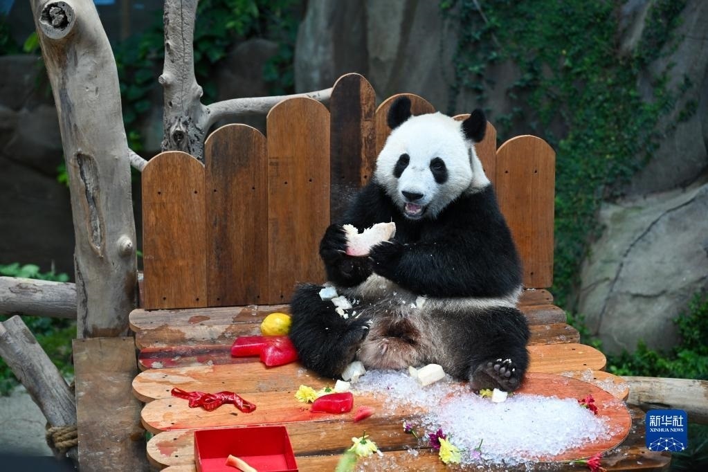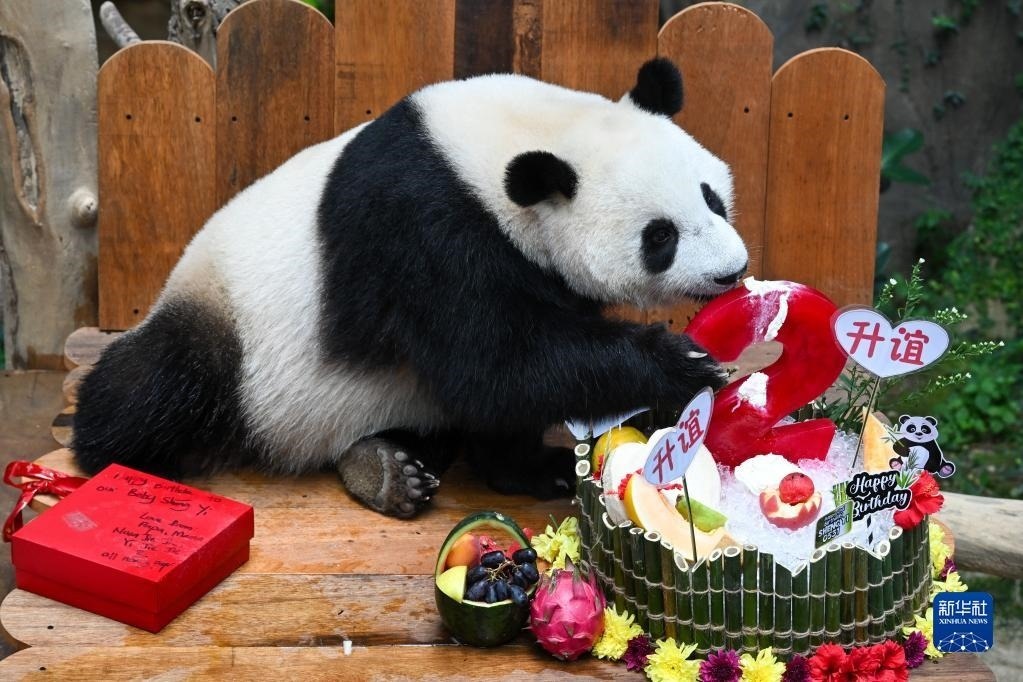 當(dāng)日,大熊貓寶寶“升誼”迎來兩歲生日,動物園為它準(zhǔn)備了特別的生日大餐,眾多民眾前往動物園為它慶生?!吧x”是中國旅馬大熊貓“興興”和“靚靚”生下的第三只寶寶,出生于2021年5月31日中馬建交47周年紀(jì)念日當(dāng)天。新華社記者 朱煒 攝