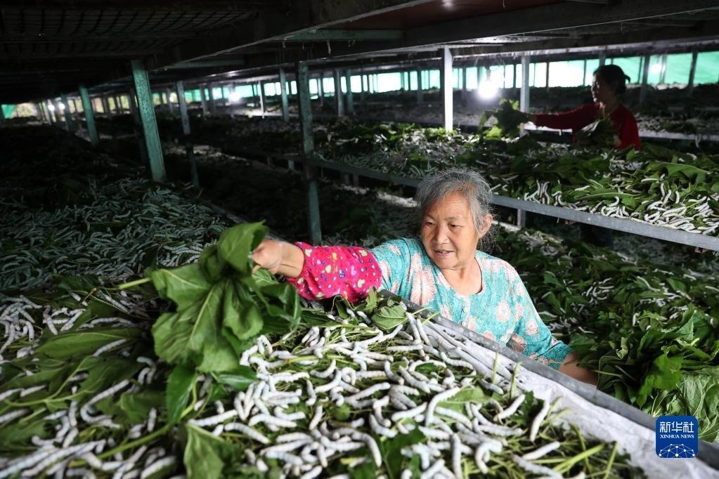 重慶市黔江區(qū)將石漠化治理與蠶桑產(chǎn)業(yè)發(fā)展相結(jié)合,在石漠化地里栽植桑樹養(yǎng)蠶,蠶繭加工成絲織品銷往多個(gè)國家和地區(qū),增加了當(dāng)?shù)剞r(nóng)民收入,同時(shí)也改善了當(dāng)?shù)氐纳鷳B(tài)環(huán)境,減少了水土流失。新華社發(fā)(楊敏 攝)