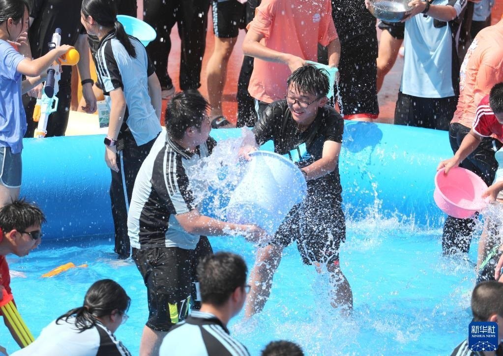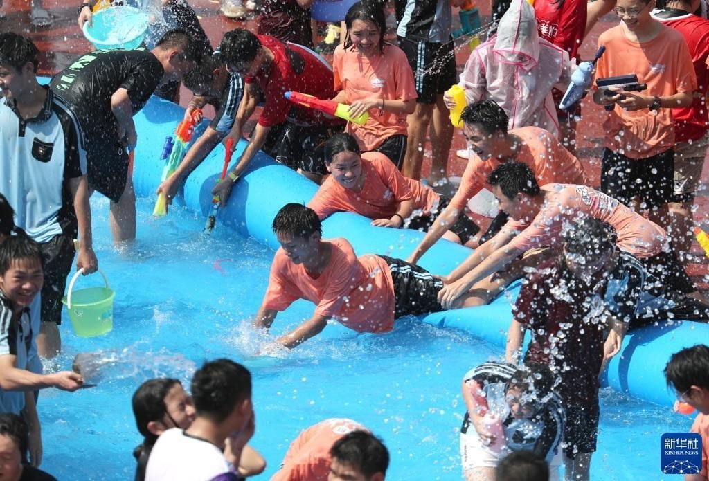 6月2日,學(xué)生們享受潑水活動(dòng)帶來的快樂。