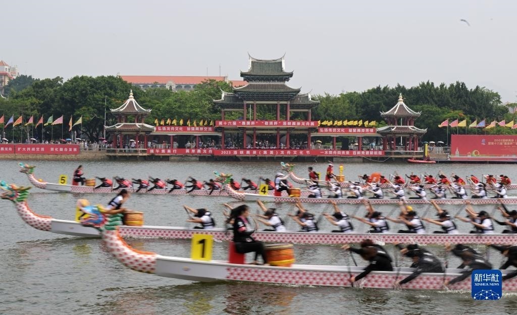 當日,2023海峽兩岸(集美)龍舟文化節(jié)暨第十六屆“嘉庚杯”“敬賢杯”海峽兩岸龍舟賽在廈門集美龍舟池啟幕。來自海峽兩岸的47支龍舟隊伍在競賽中享受龍舟競渡的活力、中華傳統(tǒng)文化的魅力,共有約500名臺胞參與賽事。