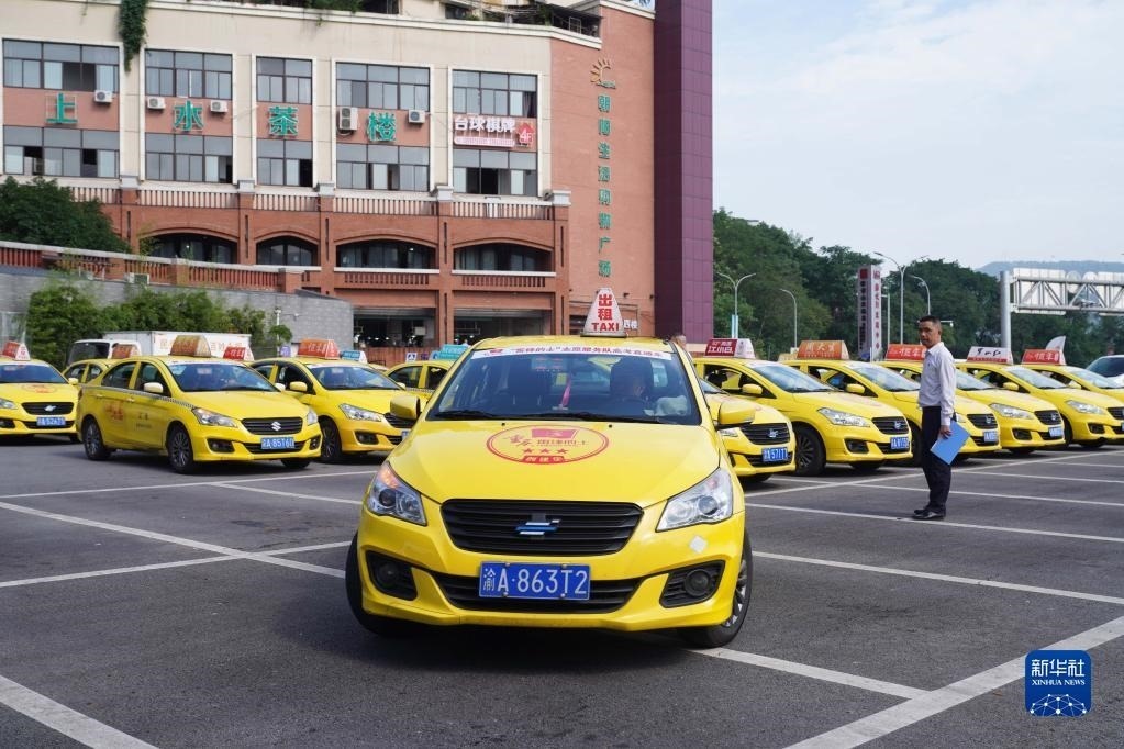 當(dāng)日,在重慶公運(yùn)集團(tuán)北碚分公司停車場(chǎng),當(dāng)?shù)亍袄卒h的士”志愿服務(wù)隊(duì)高考直通車集結(jié)出發(fā)。高考期間,考生可憑準(zhǔn)考證免費(fèi)搭乘愛(ài)心送考車前往轄區(qū)各考點(diǎn),也可以通過(guò)公布的電話進(jìn)行預(yù)約乘坐。新華社發(fā)(秦廷富 攝)