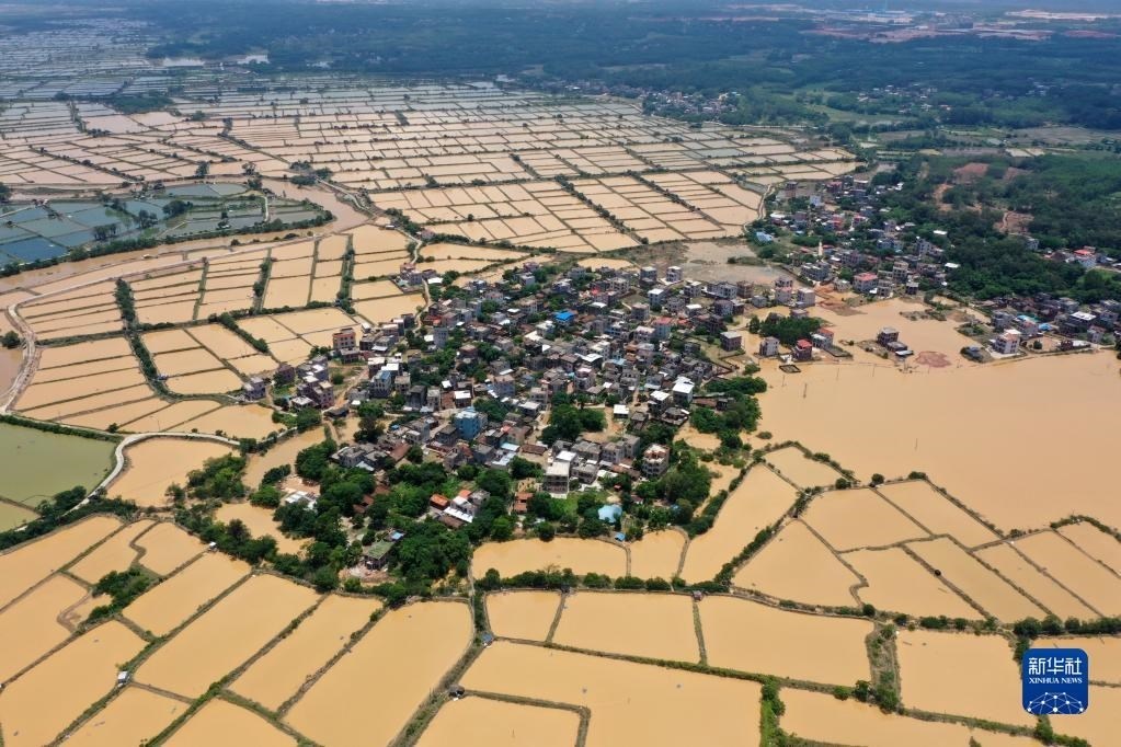 廣西合浦縣白沙鎮(zhèn)受強(qiáng)降雨影響的村莊(6月11日攝,無(wú)人機(jī)照片)。