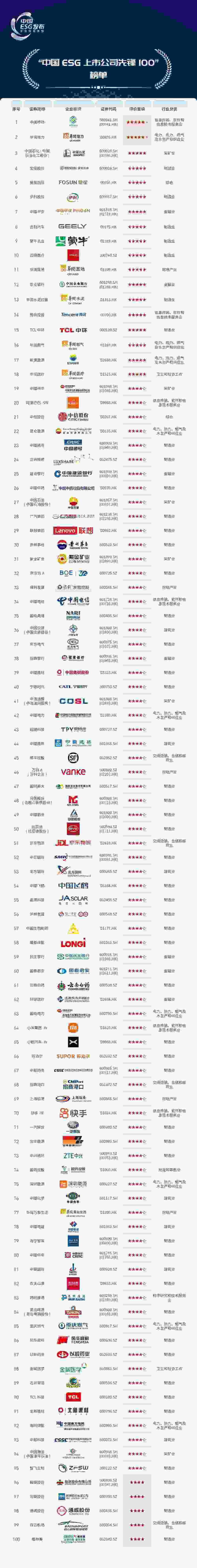 經(jīng)分析,中國移動、華潤電力、中國石化、寶鋼股份、復(fù)星國際、伊利股份、中國平安、吉利汽車、蒙牛乳業(yè)和邁瑞醫(yī)療等100家上市公司入選“中國ESG上市公司先鋒100”。