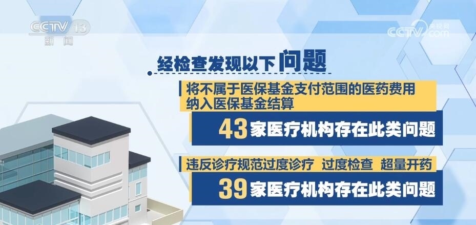 國家飛檢組共抽查了48家定點醫(yī)療機(jī)構(gòu),包括三級公立醫(yī)院40家、三級民營醫(yī)院3家、二級以下民營醫(yī)療機(jī)構(gòu)5家,經(jīng)檢查發(fā)現(xiàn)以下問題:一、重復(fù)收費、超標(biāo)準(zhǔn)收費、分解項目收費,48家醫(yī)療機(jī)構(gòu)存在此類問題。二、串換藥品、醫(yī)用耗材、診療項目和服務(wù)設(shè)施,46家醫(yī)療機(jī)構(gòu)存在此類問題。三、將不屬于醫(yī)?;鹬Ц斗秶尼t(yī)藥費用納入醫(yī)?;鸾Y(jié)算,43家醫(yī)療機(jī)構(gòu)存在此類問題。四、違反診療規(guī)范過度診療、過度檢查、超量開藥,39家醫(yī)療機(jī)構(gòu)存在此類問題。此外,部分醫(yī)療機(jī)構(gòu)存在分解住院,藥品、醫(yī)用耗材進(jìn)銷存不符,未嚴(yán)格執(zhí)行國家組織藥品耗材集中帶量采購政策,按病種付費模式下高靠病組、低標(biāo)準(zhǔn)入院等其他違法違規(guī)問題;一些醫(yī)療機(jī)構(gòu)存在虛構(gòu)醫(yī)藥服務(wù)項目問題。
