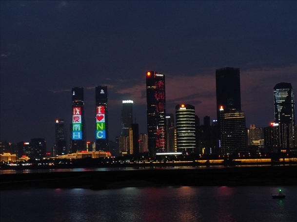 央視網(wǎng)消息(記者/楊雯珺):6月13日晚,南昌贛江兩岸點(diǎn)亮“一江兩岸燈光秀”,“e法治網(wǎng) 同心同行”的主題宣傳標(biāo)語在南昌地標(biāo)建筑綠地雙子塔滾動(dòng)播放。兩岸燈火璀璨,助力全社會(huì)網(wǎng)絡(luò)普法的宣傳氛圍。