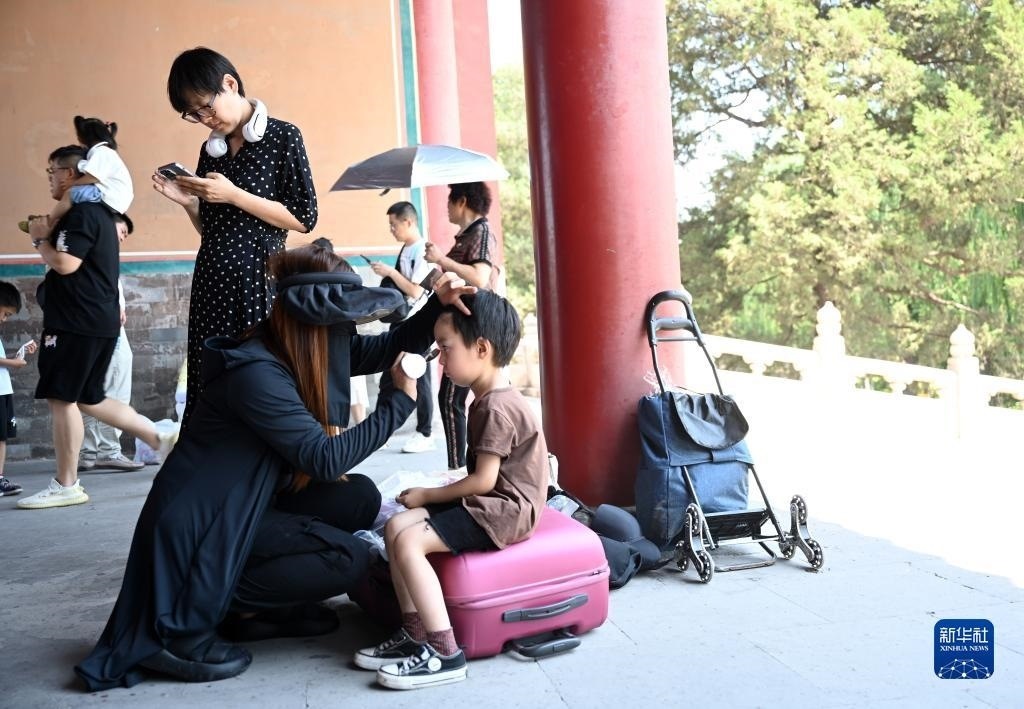 6月14日,一名小朋友在故宮內(nèi)化妝,準(zhǔn)備拍攝寫真。
