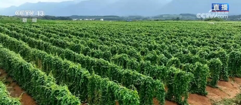 央視網(wǎng)消息: 當(dāng)下,在廣西賀州市富川瑤族自治縣,上萬畝的淮山正陸續(xù)進(jìn)入營養(yǎng)生長期,村民們忙著開展各種管護(hù)工作??偱_記者廖汨就正在富川的一個淮山種植基地,馬上來連線她。