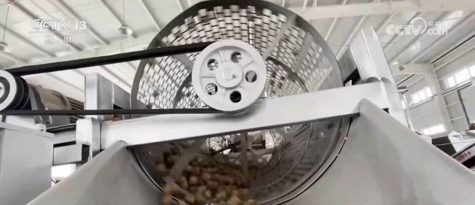 從田間地頭集中收購的青皮核桃會(huì)被送往加工車間,通過現(xiàn)代化機(jī)器設(shè)備首先將核桃外層的青皮脫離,此時(shí)黃色的果殼就會(huì)顯現(xiàn)。然后進(jìn)行清洗去除掉核桃外殼的雜質(zhì),緊接著就是利用烘干設(shè)備將核桃烘干,之后再利用分選設(shè)備將大小不均的核桃進(jìn)行篩選分類,最后一步就是將分類好的成品核桃打包裝箱銷往各大市場(chǎng)。