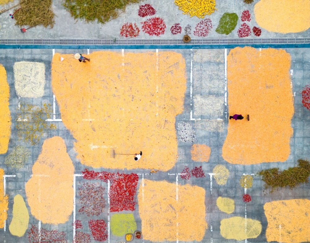 金秋時節(jié),全國各地陸續(xù)進入收獲季,農(nóng)民搶抓農(nóng)時收獲晾曬,田間一派喜人的豐收圖景。