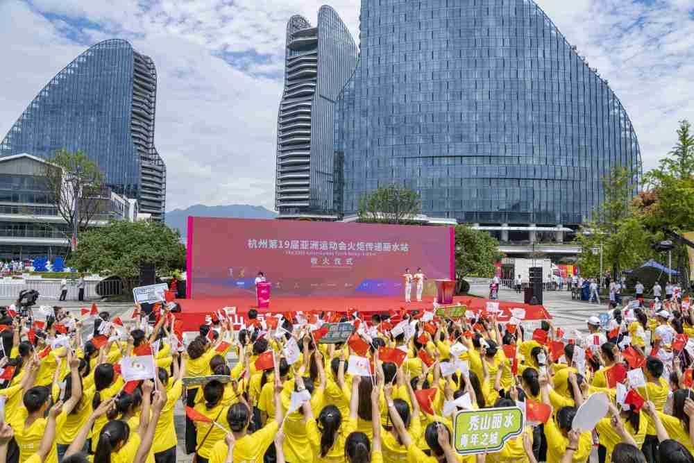 ↑這是杭州亞運(yùn)會(huì)火炬?zhèn)鬟f麗水站收火儀式現(xiàn)場(chǎng)。