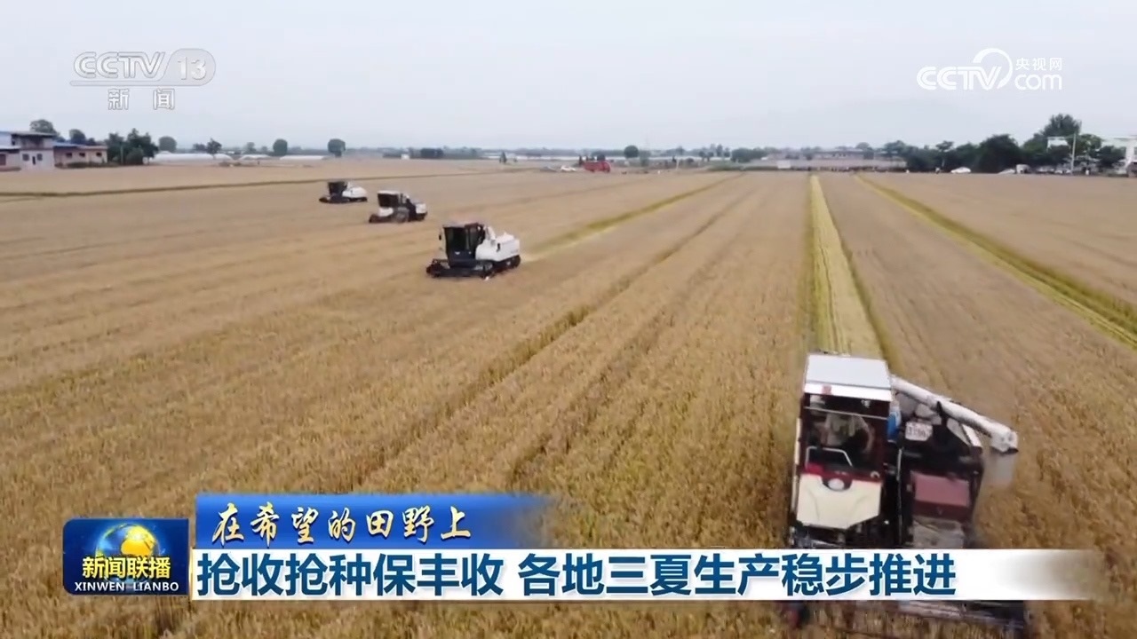 央視網(wǎng)消息:這里是湖北省咸寧市大幕鄉(xiāng)東源村的千畝中稻示范田,層層疊疊的金色稻田里,收割機正在穿梭作業(yè)。農(nóng)戶們則配合著裝袋,將收好的稻谷轉(zhuǎn)運到附近的曬谷場就近晾曬。