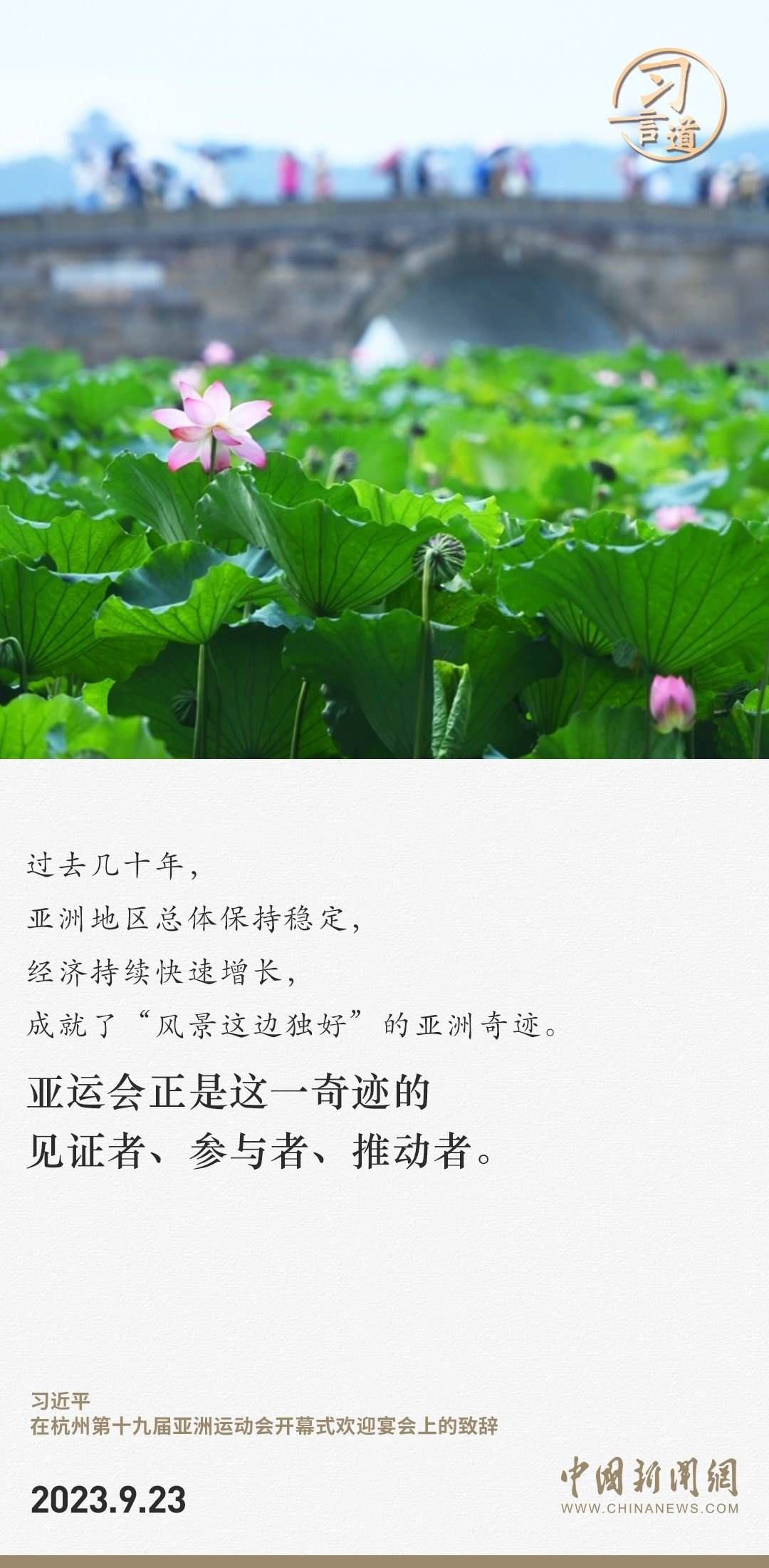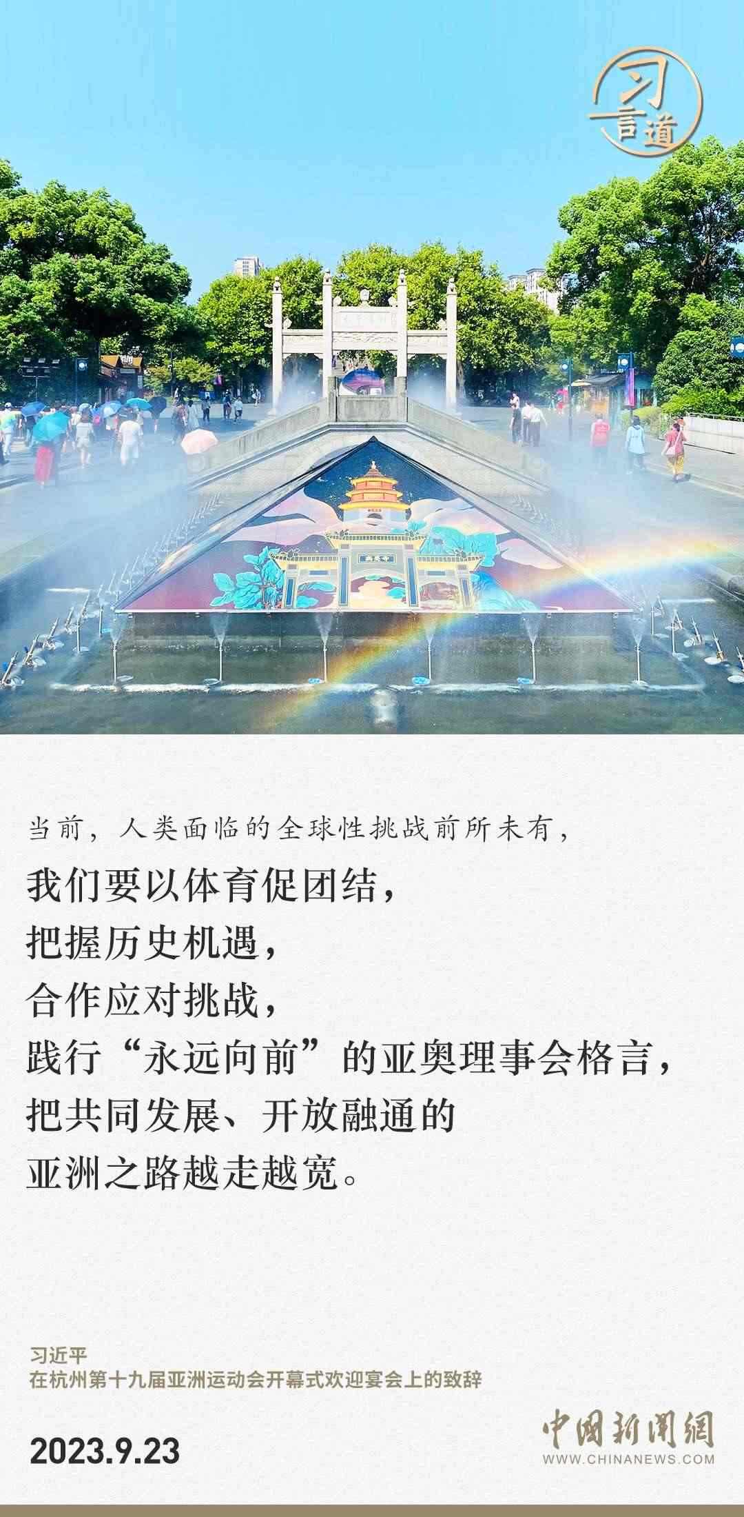 9月23日中午,國(guó)家主席習(xí)近平和夫人彭麗媛在浙江省杭州市西子賓館舉行宴會(huì),歡迎來(lái)華出席杭州第19屆亞洲運(yùn)動(dòng)會(huì)開幕式的國(guó)際貴賓。習(xí)近平發(fā)表致辭指出——