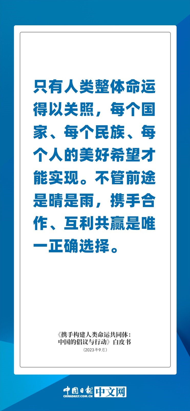 國務院新聞辦公室于2023年9月26日發(fā)布《攜手構建人類命運共同體:中國的倡議與行動》白皮書,發(fā)人深思催人奮進。