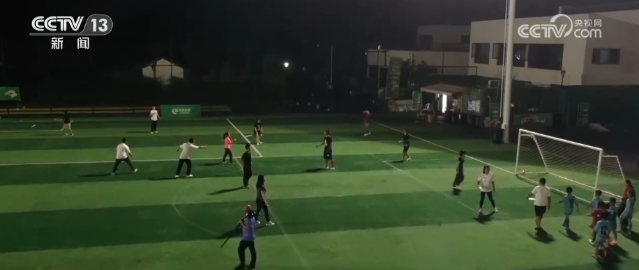 總臺(tái)記者 李欣蔓:新港村足球場(chǎng)占地約26畝,包含兩塊標(biāo)準(zhǔn)的11人制足球場(chǎng)。五六年前,這里還是一片被騰退的低小散企業(yè)所剩下的老廠房。2019年,村里建起了第一塊專業(yè)的運(yùn)動(dòng)場(chǎng)地。2023年以來(lái),這里已經(jīng)承接了35場(chǎng)足球賽,各類包場(chǎng)活動(dòng)達(dá)到80多次。除了承接活動(dòng)和比賽,這塊場(chǎng)地還免費(fèi)向村民和散客開放。