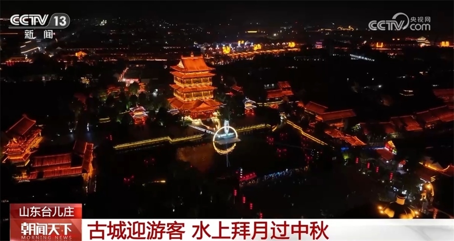 中秋國慶“雙節(jié)”假期,山東臺兒莊古城舉辦拜月大典、雙月鬧中秋等中秋傳統(tǒng)民俗活動。在陣陣鼓聲中,瑞獅歡躍舞動、祥龍蜿蜒騰飛、火鳳高空盤旋,身著漢服的女子伴隨著悠揚的古樂聲進行傳統(tǒng)祭拜儀式,寄托著人們美好的愿望。