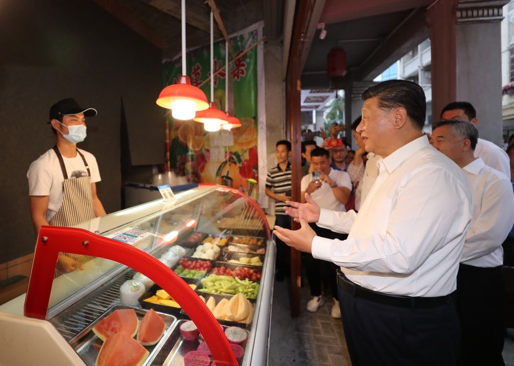 這是7月6日上午,習(xí)近平在蘇州平江歷史文化街區(qū)考察。