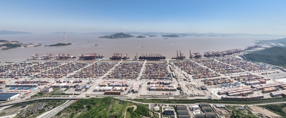 鳥瞰寧波舟山港穿山港區(qū)(無人機(jī)照片,5月9日攝)。新華社記者 翁忻旸 攝