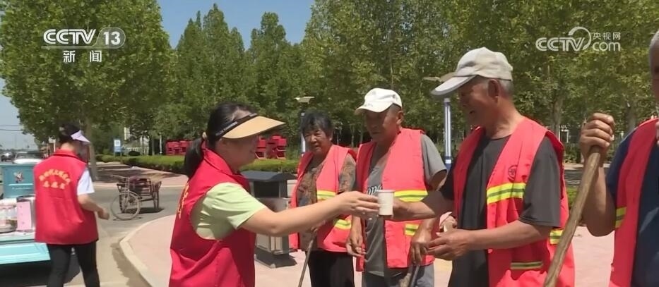 在德州市陵城區(qū),當(dāng)?shù)卦O(shè)置了歇腳驛站,為戶(hù)外工作者提供納涼的地方。同時(shí),志愿者們走進(jìn)田間地頭、街頭巷尾,為戶(hù)外工作者們送去綠豆湯、礦泉水等解暑降溫物品。