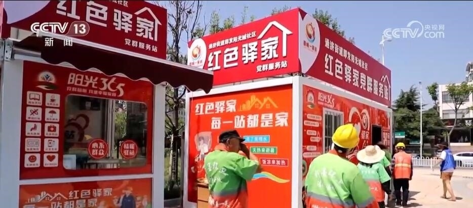 在青島市即墨區(qū),34處新啟用的“紅色驛家”黨群服務(wù)站,成了環(huán)衛(wèi)工人們歇腳的新去處。這些“紅色驛家”配備空調(diào),可以提供應(yīng)急充電、免費(fèi)飲水、急救藥箱、愛(ài)心雨傘等13項(xiàng)服務(wù)。