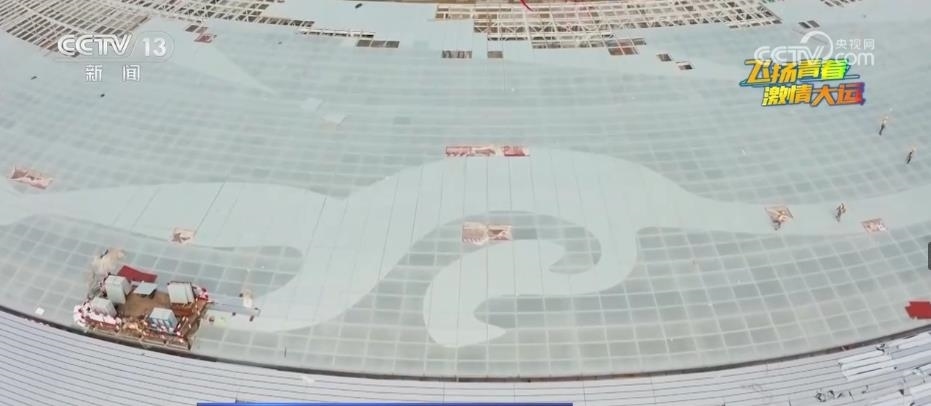 總臺記者 陳佳穎:放大了270萬倍的太陽神鳥,要讓它“騰飛”在主體育場的穹頂并不容易。12540塊彩釉玻璃,每一塊都要生成一個獨特的二維碼,拼裝時才能準確找到安裝位置。