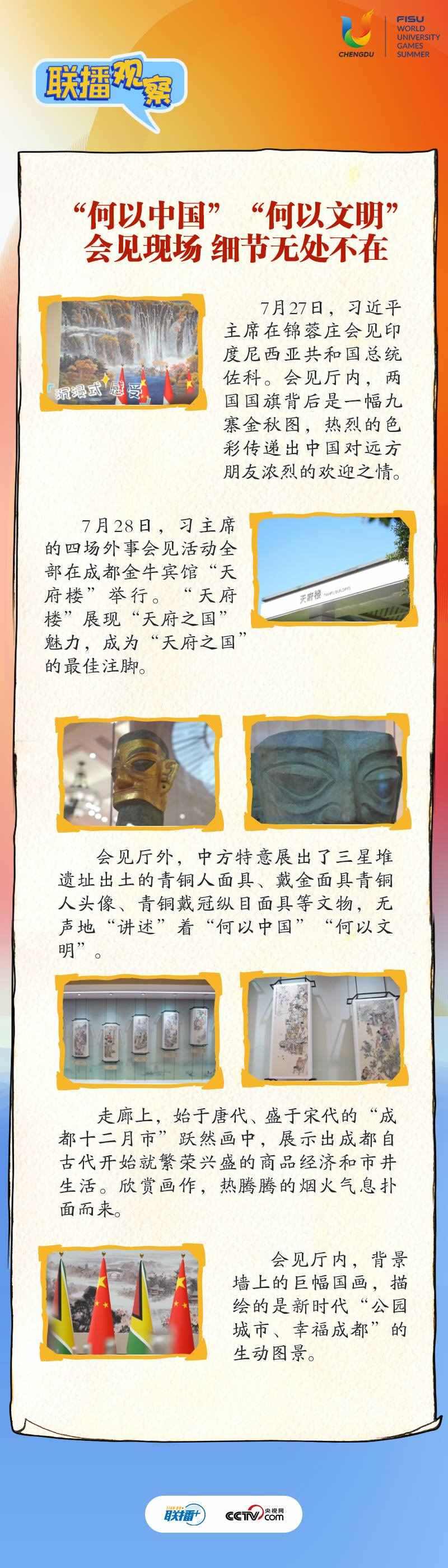 大運會時間,我國重要的主場外交也同步拉開帷幕,習近平主席的日程格外繁忙。央視網《聯播+》帶您沉浸式感受這場青春盛會為世界送出的別具匠心的“四川禮物”。