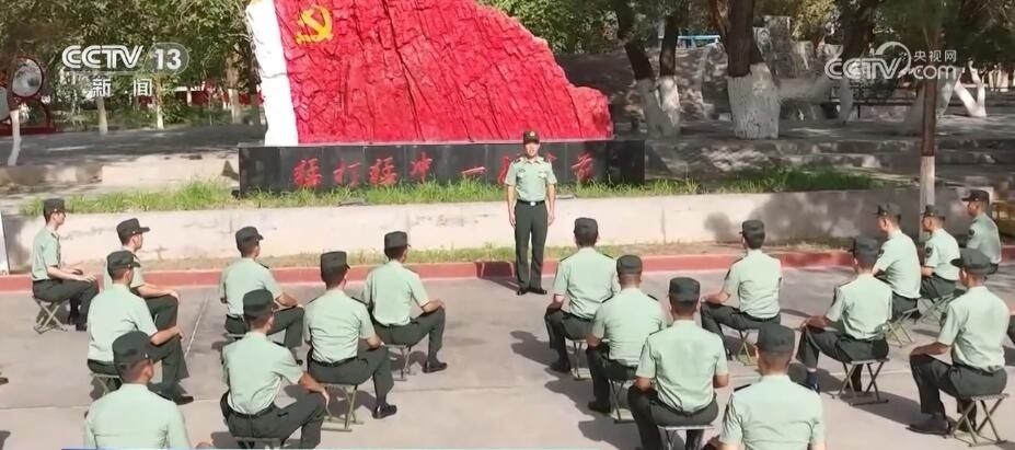 八一建軍節(jié)當(dāng)天,新疆軍區(qū)某紅軍團(tuán)組織升國旗儀式,官兵們整齊列隊(duì)向國旗行軍禮。升旗儀式結(jié)束后,部隊(duì)在營區(qū)內(nèi)“黨旗山”下為部分官兵頒發(fā)衛(wèi)國戍邊紀(jì)念章,以此表彰他們對(duì)維護(hù)祖國繁榮作出的貢獻(xiàn)。