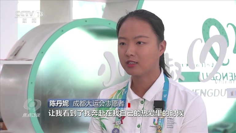 成都大運(yùn)會(huì)志愿者陳丹妮:“我一定要回來,一定要把這件事情做完,而且把這件事情做好。我覺得成都大運(yùn)會(huì)是我跟成都很深的情感上,包括精神上的一個(gè)聯(lián)結(jié),它已經(jīng)成為我青春記憶中非常重要的一個(gè)環(huán)節(jié),所以我完全沒有想過我有一天要放棄它。”