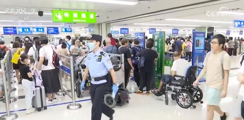 總臺央視記者 夏美子:這里是羅湖口岸,現(xiàn)在是中午的12時,您可以看到,在我身后的這個通道里有大批的香港游客,正在通過這里準備通關(guān)進入深圳。那就在我所在的這個口岸,這個暑假每天要迎來13.8萬人次的通關(guān)量,而到了周末這個數(shù)據(jù)就要攀升到近20萬人次,就在這兩天,包括羅湖口岸在內(nèi)的深圳九個口岸,創(chuàng)下了復(fù)關(guān)以來單日出入境客流量的高峰,突破了74.6萬人次。