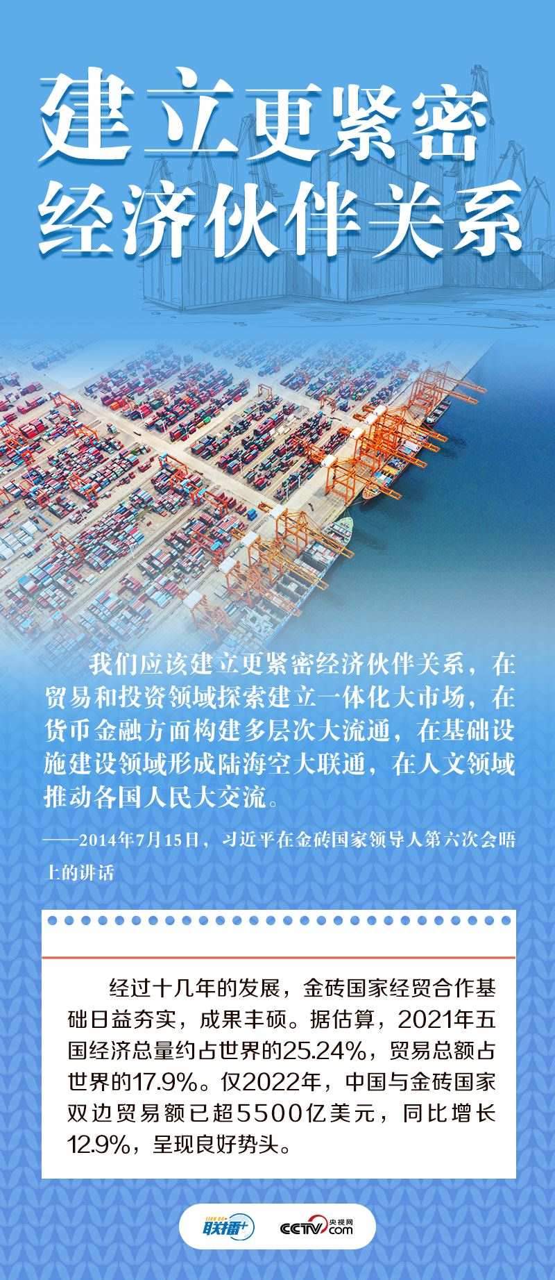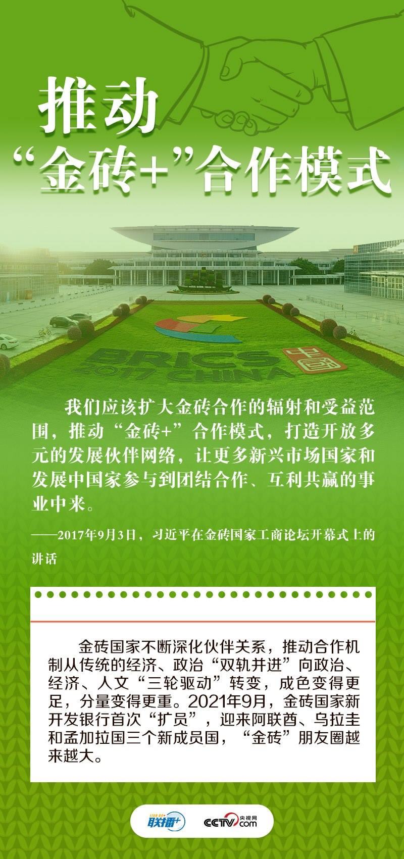 “我們五國雖然山海相隔,但懷著合作共贏的共同目標(biāo)走到了一起”。“獨木不成林。在經(jīng)濟全球化深入發(fā)展的時代條件下,金磚國家發(fā)展不能獨善其身,必須在謀求本國發(fā)展的同時促進各國共同發(fā)展”。十多年來,習(xí)近平主席多次出席或主持金磚國家領(lǐng)導(dǎo)人會晤,論述金磚合作之道,提出“金磚+”合作理念,為推動金磚合作走深走實貢獻中國智慧,在金磚國家合作進程中留下深刻的“中國印記”。