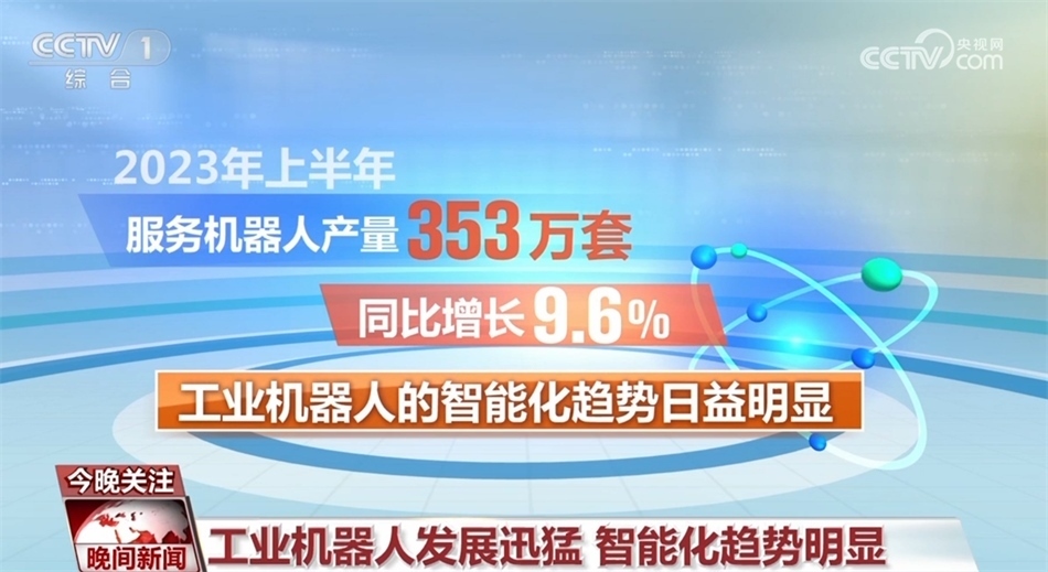 據(jù)了解,我國工業(yè)機(jī)器人銷量已占全球的一半以上,連續(xù)10年居世界首位。2023年上半年,工業(yè)機(jī)器人產(chǎn)量達(dá)到了22.2萬套,同比增長5.4%,服務(wù)機(jī)器人產(chǎn)量353萬套,同比增長9.6%。同時,工業(yè)機(jī)器人的智能化趨勢日益明顯。