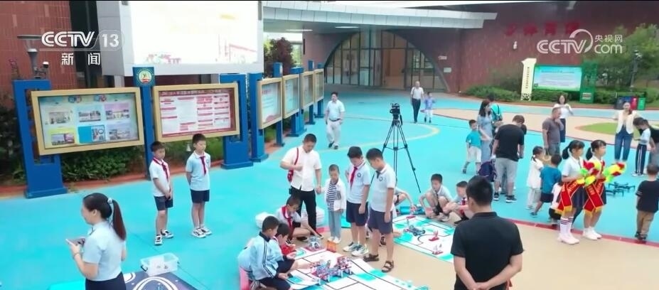在江西贛南師范大學(xué)附屬蓉江小學(xué),形態(tài)各異的機(jī)器人分布在校園里,孩子們既可以聽老師講解機(jī)器人知識,也可以與機(jī)器人互動(dòng)體驗(yàn)。此外,學(xué)校還準(zhǔn)備了3D打印機(jī)、VR眼鏡體驗(yàn)、激光雕刻等多個(gè)科學(xué)體驗(yàn)展示區(qū),讓孩子們近距離感受科學(xué)的魅力。