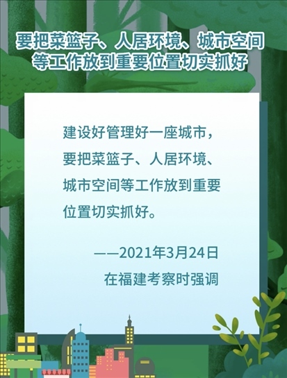 2021年3月24日,習(xí)近平在福建福州福山郊野公園觀景平臺,聽取城市生態(tài)公園規(guī)劃建設(shè)、城市水系綜合治理情況匯報(bào)。