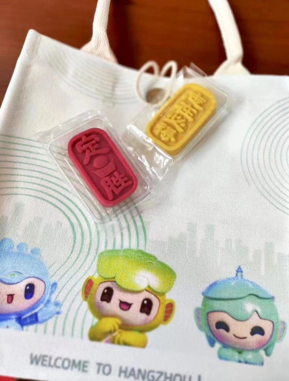 “志愿者們可以在手賬本上記錄志愿服務(wù)過(guò)程中的點(diǎn)點(diǎn)滴滴,留下美好的亞運(yùn)回憶;特制的行李卡牌可以幫助他們標(biāo)記自己的物品和行李;而一紅一黃兩塊定勝糕上面分別寫(xiě)有‘定勝’以及‘志在必得’的字樣,則是為他們加油打氣?!焙贾輥嗊\(yùn)村人事與志愿者管理中心副主任、浙江外國(guó)語(yǔ)學(xué)院團(tuán)委書(shū)記邱萍說(shuō)。