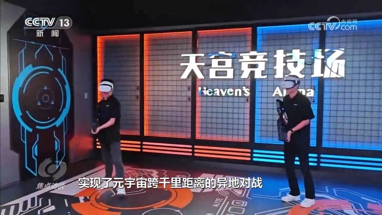 閃爍的霓虹燈配合賽博朋克風(fēng)的藝術(shù)裝置,在鋼鐵高爐里上演光影秀,相隔千里的玩家在同一個(gè)元宇宙幻境中聯(lián)手突圍,服貿(mào)會期間,這里每天都有十幾場動感燈光秀和中國自主研發(fā)的VR競技項(xiàng)目展示。