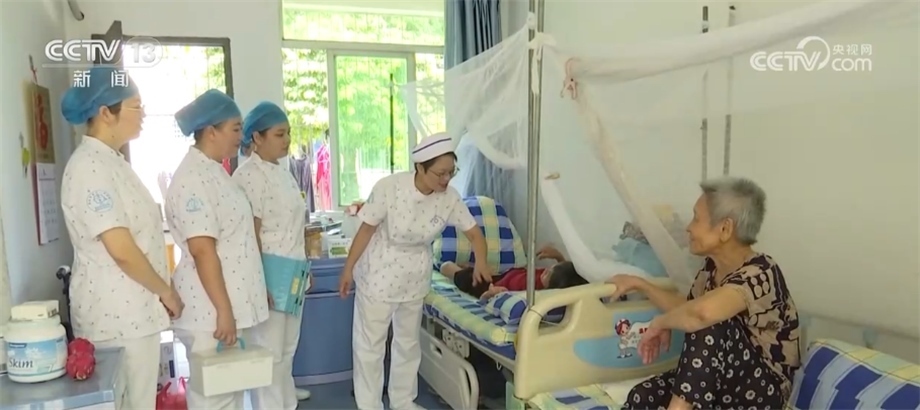 由于住在這里的康復(fù)病人平均年齡都比較大,除了進(jìn)行正常的護(hù)理外,邢少云每到一間病房都會(huì)拉著他們的手聊上一會(huì)兒,老人們看到邢少云的到來(lái)也都顯得格外開(kāi)心。