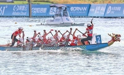 伴隨鏗鏘鼓聲,運(yùn)動(dòng)員齊心協(xié)力、奮力劃槳,龍舟如離弦之箭沖向終點(diǎn)。10月4日,杭州亞運(yùn)會(huì)龍舟項(xiàng)目在溫州龍舟運(yùn)動(dòng)中心開賽,中國龍舟隊(duì)分獲男子、女子組12人龍舟200米直道競速賽金牌。