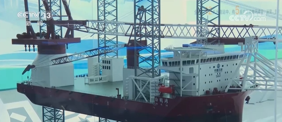 這是目前國內(nèi)最先進的海上風電安裝平臺“白鶴灘”號的模型,“白鶴灘”號也是全球首艘新一代2000噸級海上風電安裝平臺。