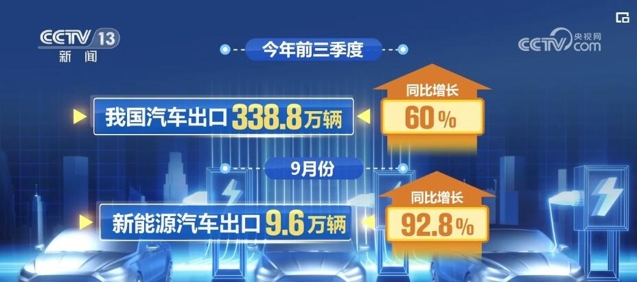 今年前三季度,我國汽車出口338.8萬輛,同比增長60%。這其中,新能源汽車的出口增幅十分強勁。其中9月份,新能源汽車出口9.6萬輛,同比增長92.8%。在不少國家,中國的新能源汽車已經(jīng)成為當?shù)匦履茉雌囦N量的總冠軍。分析背后的原因,“固本興新”是關(guān)鍵詞,新能源汽車正為中國外貿(mào)注入新的動能。據(jù)中國汽車工業(yè)協(xié)會的預計,2023年汽車出口將超過400萬輛,其中新能源汽車將超過100萬輛。