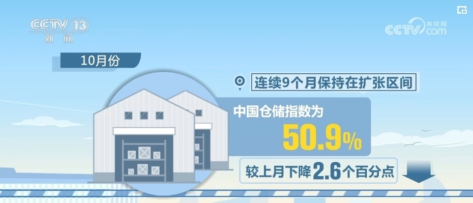 10月份,中國倉儲指數(shù)為50.9%,較上月下降2.6個百分點(diǎn),連續(xù)9個月保持在擴(kuò)張區(qū)間。