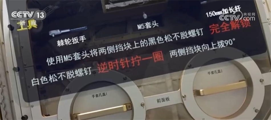 ?????? 中國科學(xué)院空間應(yīng)用工程與技術(shù)中心研究員 張璐:這里面,我們主要是進(jìn)行一些比如說小載荷、標(biāo)準(zhǔn)載荷的維修操作,包括有一些有密閉要求的載荷,我們可以通過更換手套進(jìn)行操作。艙外有一些大型載荷有一些安裝、升級(jí)甚至拆裝的操作,我們可以通過這個(gè)移動(dòng)維修平臺(tái),把這個(gè)平臺(tái)拉開以后,它可以展開成一個(gè)大概900毫米x700毫米的一個(gè)大平板。艙外的這些大載荷可以在這個(gè)大平板上安裝固定,然后航天員在這個(gè)平板上結(jié)合內(nèi)部豐富的各種載荷的接口,來進(jìn)行相應(yīng)的維修操作。