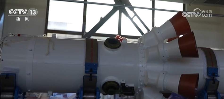 航天科技集團(tuán)一院長征二號(hào)F運(yùn)載火箭總體設(shè)計(jì)師 陳牧野:逃逸主發(fā)動(dòng)機(jī),大家可以看到它噴管相比其他的都比較大,它的推力也是這幾個(gè)發(fā)動(dòng)機(jī)中最大的。它的作用就是當(dāng)火箭發(fā)生重大故障的時(shí)候、可能威脅到航天員安全的時(shí)候,它把整個(gè)逃逸飛行器帶離故障火箭,然后能夠使逃逸飛行器打到一安全的區(qū)域。