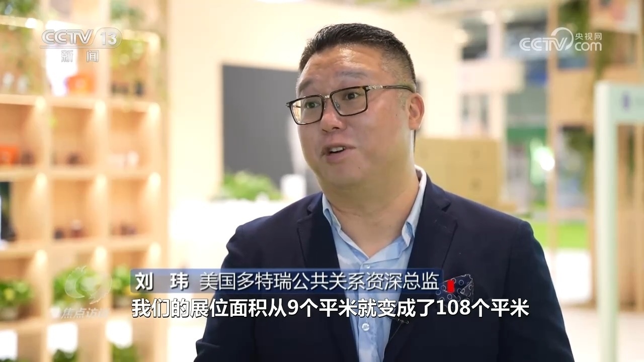 美國多特瑞公共關(guān)系資深總監(jiān)劉瑋:“因為有了第一屆進(jìn)博會,給了公司非常大的信心,所以從第二屆開始,我們的展位面積從9平米變成了108平米,第三屆的時候我們又拓展到了150平米,直到現(xiàn)在我們的整個面積達(dá)到了200平米,所以面積的增長帶來了非常好的收益?!?/p>