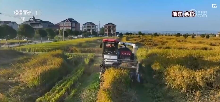 在浙江杭州余杭區(qū),14萬畝水稻迎來了豐收。據(jù)了解,今年這里稻田的畝產(chǎn)達(dá)到了750公斤,比去年增長了約10%。