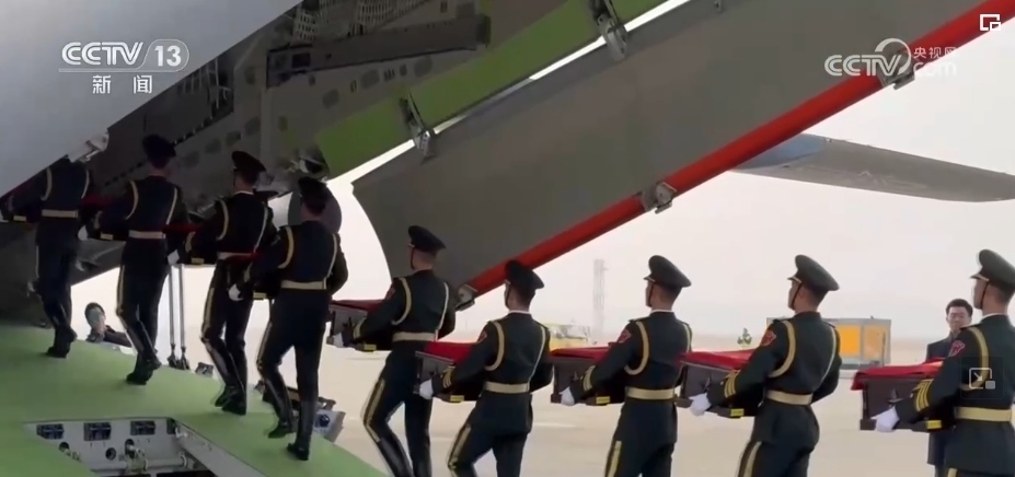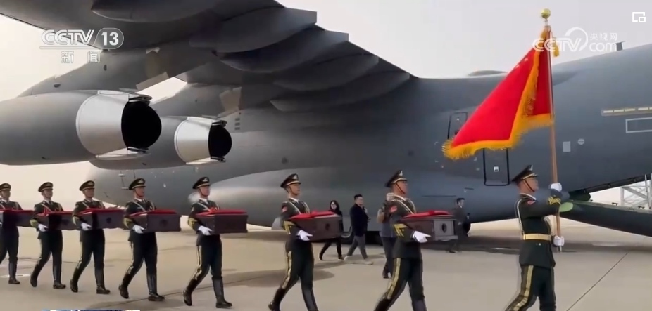 隨后,中方禮兵護(hù)送棺槨走上中國空軍運(yùn)-20運(yùn)輸機(jī)。北京時間11月23日上午,運(yùn)-20運(yùn)輸機(jī)從仁川國際機(jī)場起飛。