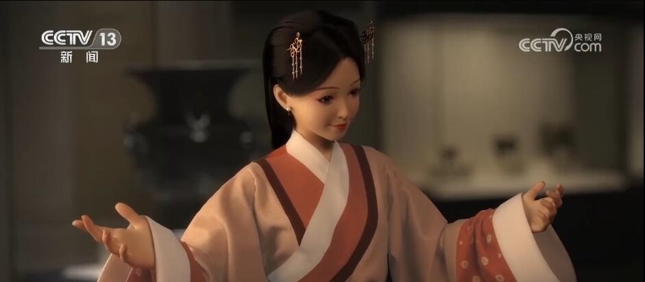 國家博物館文物活化領導小組辦公室副主任 賀占哲:她既是一個虛擬角色,她也是一個數智角色。這個形象打造既是現代的一個新青年,同時也是一個代表中華優(yōu)秀傳統(tǒng)文化,又有歷史氣息,又有青春氣息的形象,她所有的頭飾服飾包括這種妝容都是經得起考究的。