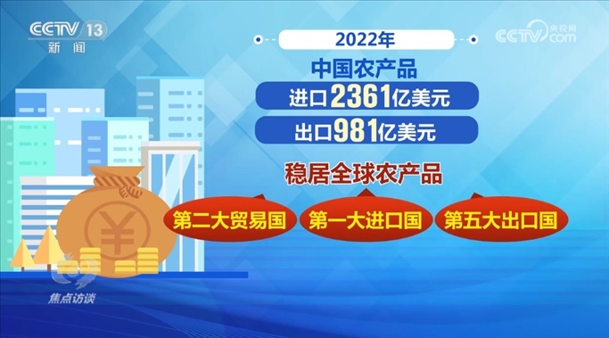 數(shù)據(jù)顯示,2001年至2022年,中國農產品貿易額年均增長12.6%,農產品出口額年均增長9.1%,進口額年均增長15.4%。2022年,中國農產品進口2361億美元,出口981億美元,穩(wěn)居全球農產品第二大貿易國、第一大進口國、第五大出口國。糧食安全的穩(wěn)定性,離不開農業(yè)供應鏈的安全可控。