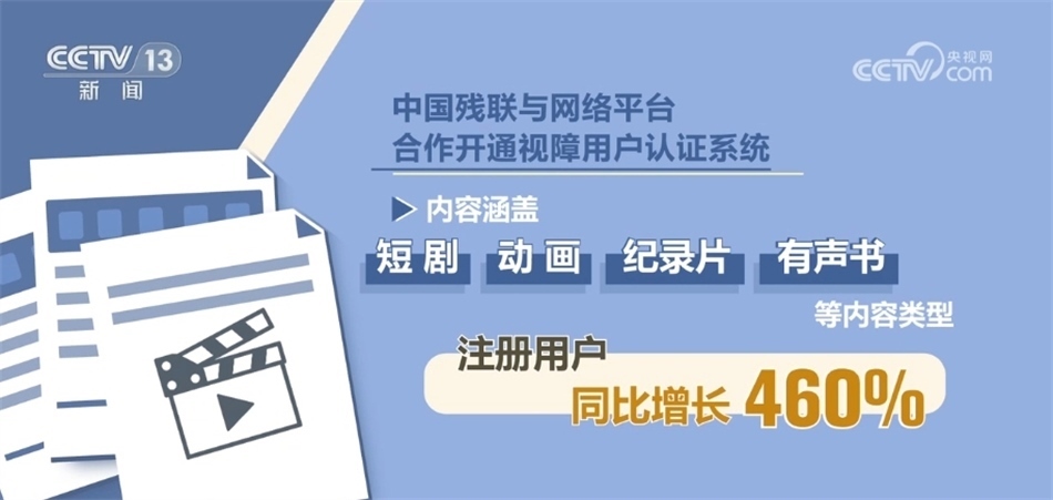 數(shù)據(jù)顯示,中國(guó)殘聯(lián)與網(wǎng)絡(luò)平臺(tái)合作開(kāi)通視障用戶認(rèn)證系統(tǒng)一年以來(lái),無(wú)障礙影視作品已超2000部(集),同比增長(zhǎng)超400%,內(nèi)容涵蓋短劇、動(dòng)畫(huà)、紀(jì)錄片、有聲書(shū)等內(nèi)容類型,注冊(cè)用戶同比增長(zhǎng)460%。